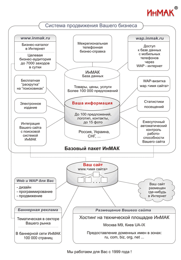 * интеграция бизнес-сайтов с поисковой системой ИнМАК, независимо от их месторасположения;